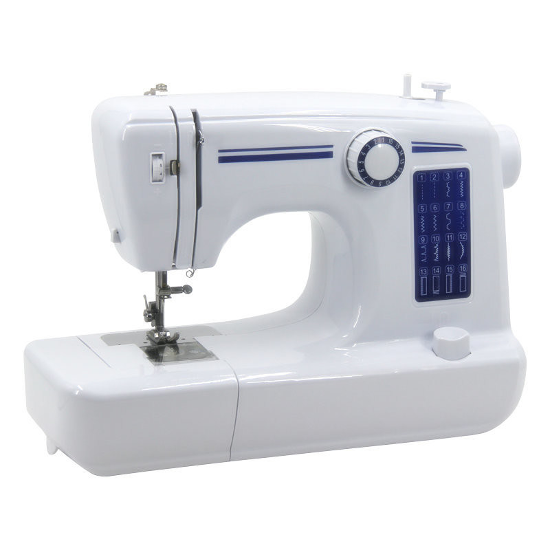 1) Die Funktionen zur Herstellung von geraden Knopflöchern, Knopfbefestigung, Reißverschlussnähen und 16 Arten von Stichmustern